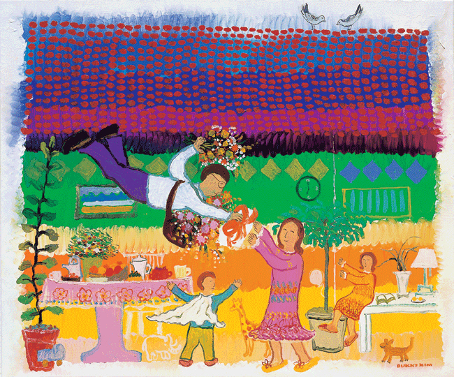 가족들이 함께 엮어가는 평범한 일상을 밝은 색채로 기록한 김덕기의 그림은 따뜻한 행복을 담고 있다. 자신의 그림을 '안락의자'에 비유한 마티스처럼 현실의 고단함과 무게감을 덜어준다. 이처럼 작가와 세상은 작품 속에 담긴 대상을 매개로 삼아 다양한 층위에서 소통한다.